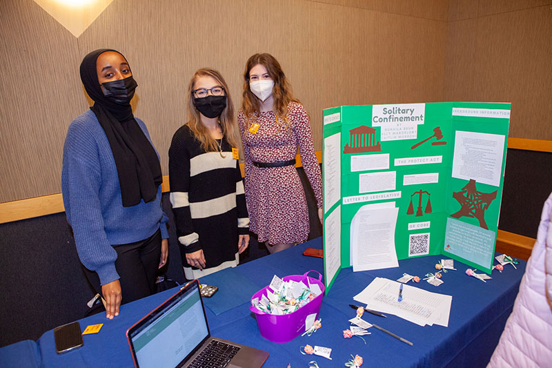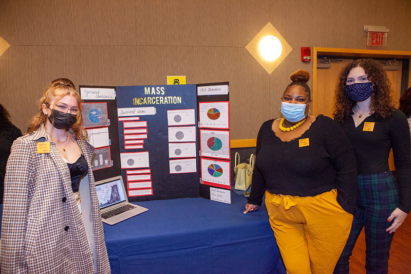 Students also provided resources on how to get involved in the fight against mass incarceration. Through a variety of case studies, informational games, QR codes to learn more about current policies and bills, ways to contact legislators and petitions, students created interactive ways for attendees to learn more about the subject.
