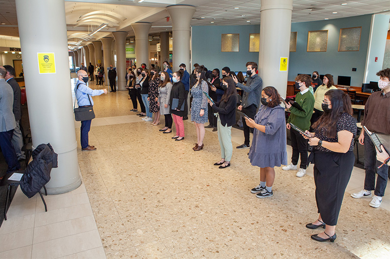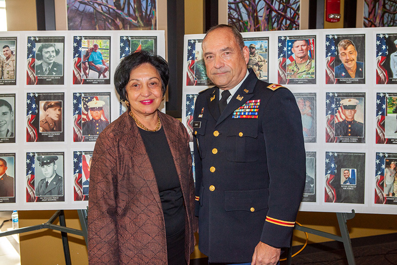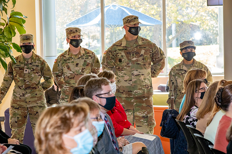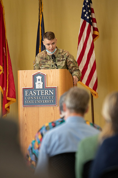 Eastern President Elsa Núñez expressed gratitude to those who made the celebration possible, especially recognizing Eastern’s VETS Center. “We have several hundred active-duty military and veterans enrolled at Eastern. I am proud to share that Eastern was tied for first in New England this fall among public regional universities in service to veterans, as ranked by U.S. News and World Report. Such external validation speaks to the support for veterans provided by our entire campus community!”