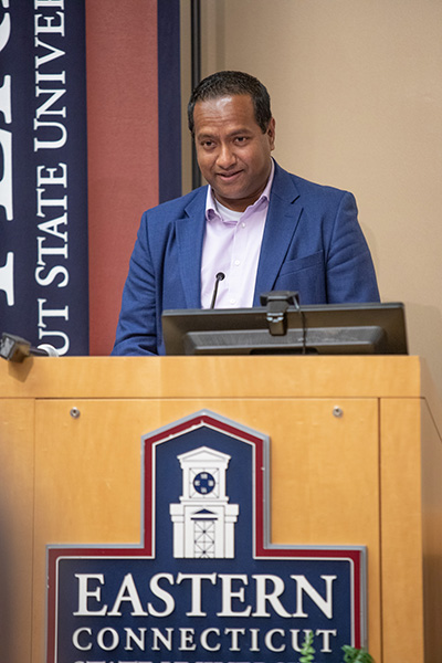 Other speakers included Chris Abayasinghe ’02, a native of Sri Lanka and now associate vice president of business services at Northeastern University; and LaMar Coleman, vice president for equity and diversity, who served as master of ceremonies.