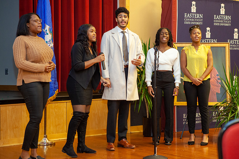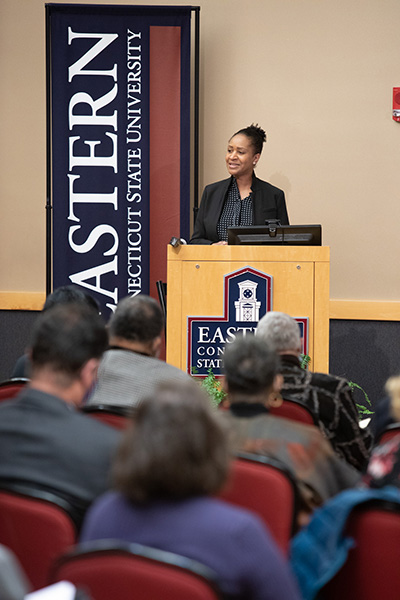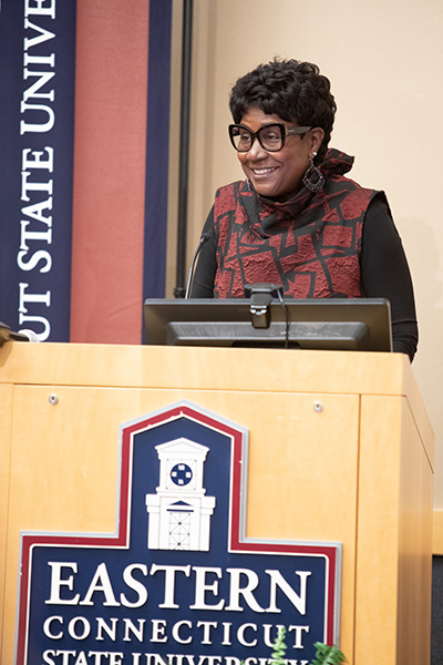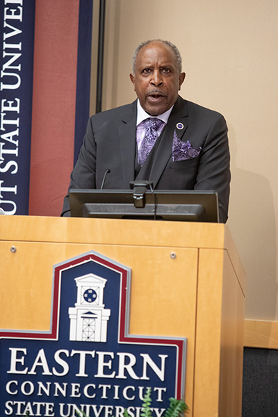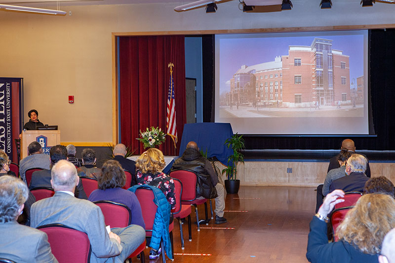 On Dec. 7, Eastern Connecticut State University honored one of its most notable champions when it named the Science Building after David G. Carter Sr., the University’s fifth president. More than 100 guests joined Eastern President Elsa Núñez in the Betty R. Tipton Room in the Student Center to recognize Carter’s leadership and contributions to Eastern. Hundreds more watched the event via a live YouTube stream.