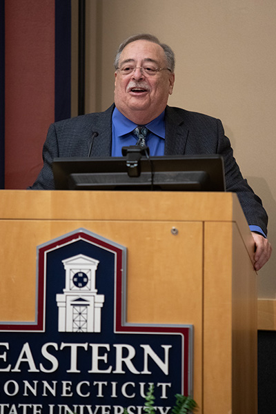 Retired Biology professor Martin Levin recalled that when Carter came to Eastern in 1988, the University had endured more than a decade of legislative pressure to close the campus and merge it with the University of Connecticut. “He was a man on a mission with a strong and persuasive voice. He was committed to transforming Eastern into a world-class liberal arts university.”