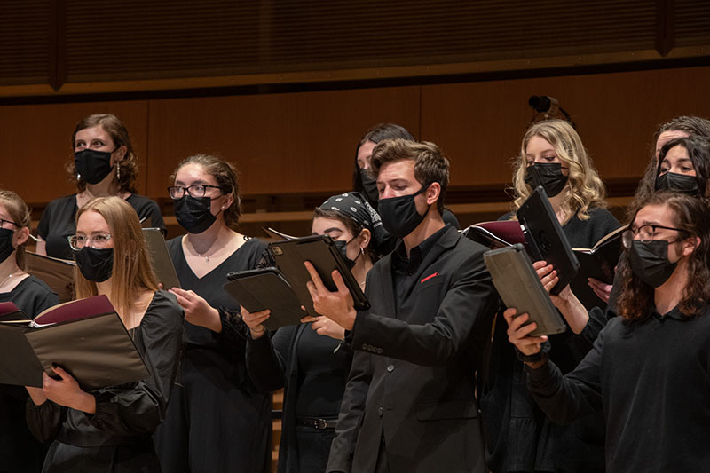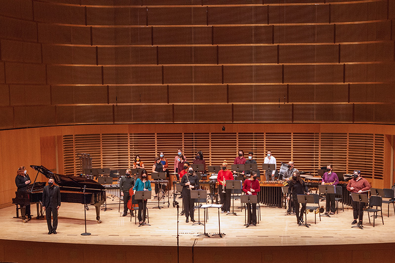 The Eastern Concert Band took the Concert Hall stage on Dec. 1 with a performance featuring flute, saxophone, trumpet, cello, piano and percussion. Directed by Kell Watkins, the band performed works by Katahj Copley, Eric Whitacre, Cait Nishimura, Jim Casella and more.