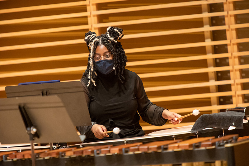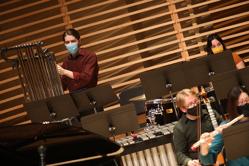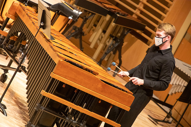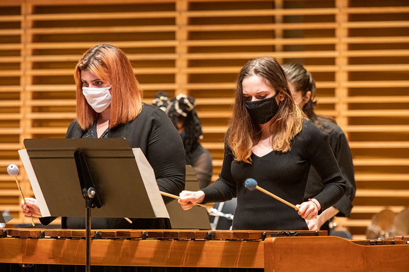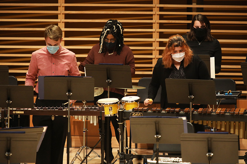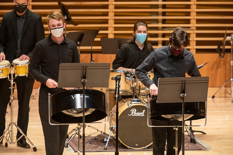 Percussion ensembles — including Percussion Ensemble, Percussion Group and World Percussion Ensemble — performed in the Concert Hall on Nov. 21. The ensembles featured 15 student percussionists who performed nine pieces by such composers as Patrick Speranza, Brian Blum, Nathan Daughtrey, Bob Marley and more. The ensembles are directed by Jeff Calissi and Matt Bronson.
