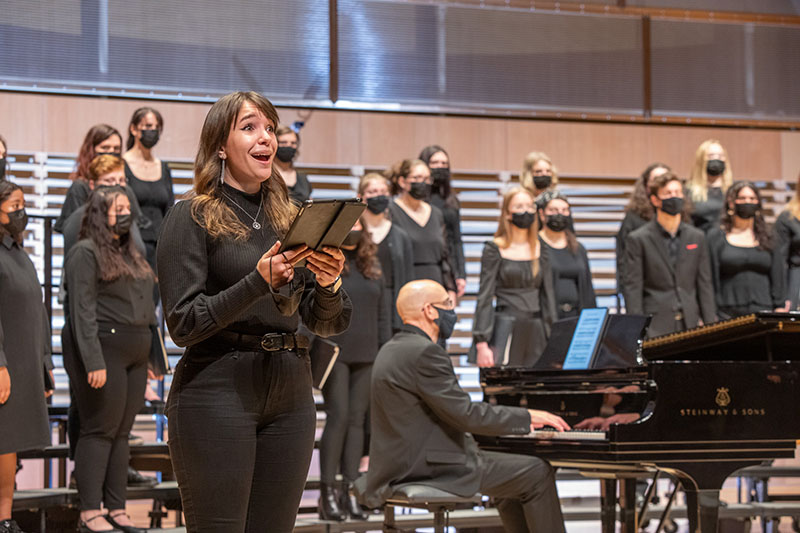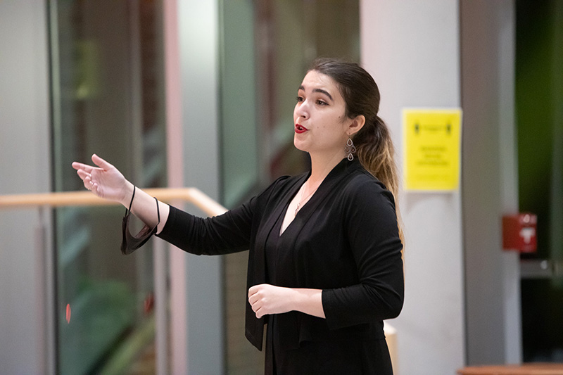 “A Night at the Opera” was a gala performance starring 10 students from the Opera Workshop who performed scenes and arias from three beloved operas. Held in the lobby of the Fine Arts Instructional Center on Nov. 5, the night featured scenes from “The Magic Flute” by Wolfgang Amadeus Mozart, “L’elisir d’amore” by Gaetano Donizetti and “Flagstaff” by Giuseppe Verdi. “A Night at the Opera” was directed by Emily Riggs with musical direction by David Ballena.