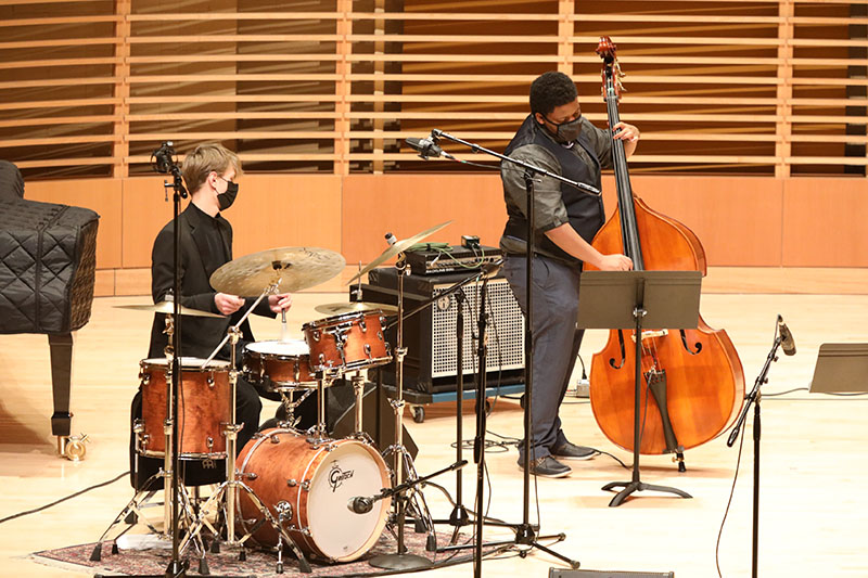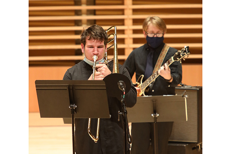 Concertgoers enjoyed a night of jazz on Nov. 29 in the Concert Hall by the Jazz Ensemble and two jazz combos. The ensemble performed works by Jerome Kern, John Coltrane and Chick Corea, while the combos performed works by Duke Ellington, Dizzy Gillespie, Roy Hargrove and Neil Hefti. The Jazz Ensemble is directed by Bryce Call, the “3 O’clock” Jazz Combo is directed by Rick O’Neal and the 3:30 Jazz Combo is directed by students Nick Ford, Evan Wood and Evan Gianfriddo.