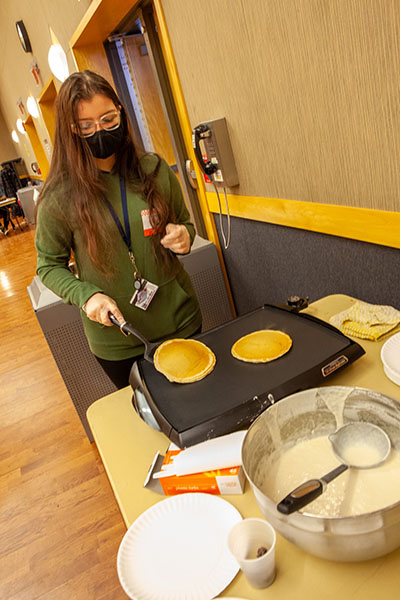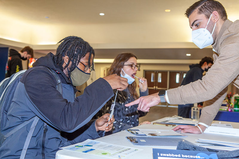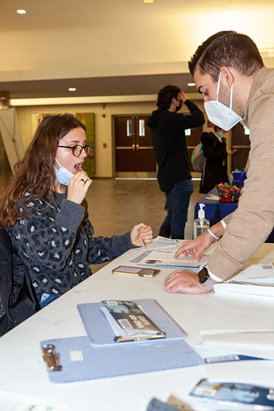 Student volunteer Hannah Giesing ’22, a health sciences major and member of the Pre-Health Society, shared the importance of the event and a personal story of why the program means so much to her. “I’ve been on the Be The Match registry since high school. I had a family member who was diagnosed with cancer, so I thought joining the registry could be a good way to match with anybody. It’s a great and simple way to save someone’s life. I think this event is a great way to involve the campus community.”