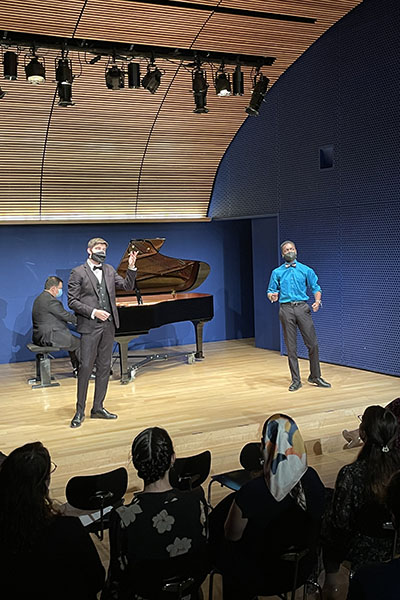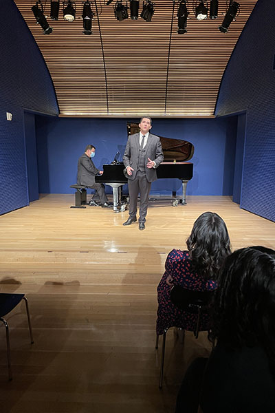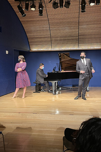“It’s a great opportunity for these students to perform at this beautiful recital hall in New York City,” said Riggs of the venue, Marc A. Scorca Hall. “This performance was an extension of their final project for the fall semester. Students presented these scenes in an on campus gala performance in November and then worked over the winter and the first part of the spring semester to adapt them for the recital at the Opera Center.” Riggs, who specializes in voice and opera, is also an active member of Opera America which runs the Opera Center.