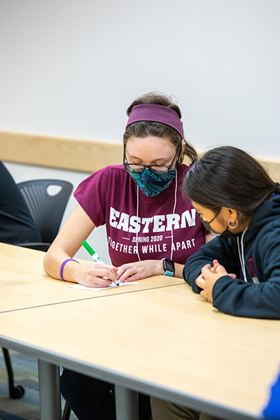 One of the CCE's ongoing partnerships is with Nutmeg Big Brothers Big Sisters (BBBS), a mentoring program with Windham Middle School that is hosted in the University's Student Center. On a weekly basis throughout the semester, Eastern volunteers meet with middle schoolers for various activities that build character, develop emotional intelligence, encourage creativity and more.