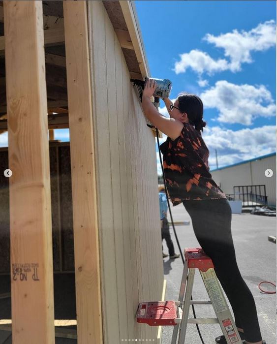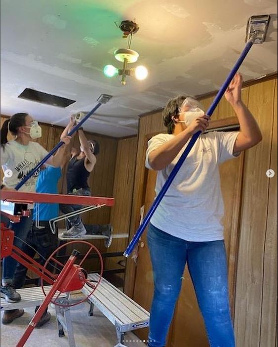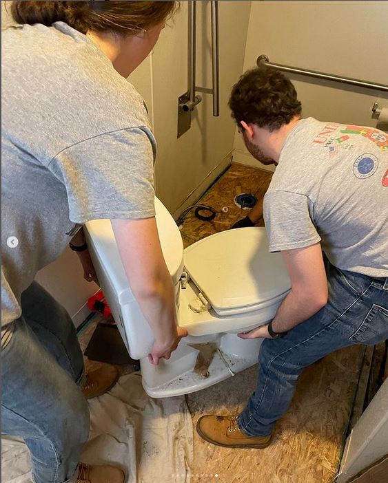 Students were able to learn and improve on a number of building skills, including how to cut and nail down Tyvek, a synthetic fiber product used to block moisture from getting inside walls, replacing flooring, and installing dry wall.