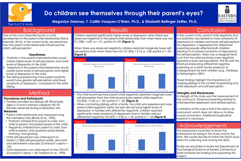 Vasquez-O’Brien commended the Eastern students for their impressive work on their research topics. “It was wonderful working with the students," said Vasquez-Obrien. "Each of the research assistants dedicated two semesters to this research project, and worked hard to shape novel hypotheses about sibling and family processes. They did an impressive job presenting their work at the conference as well.”
