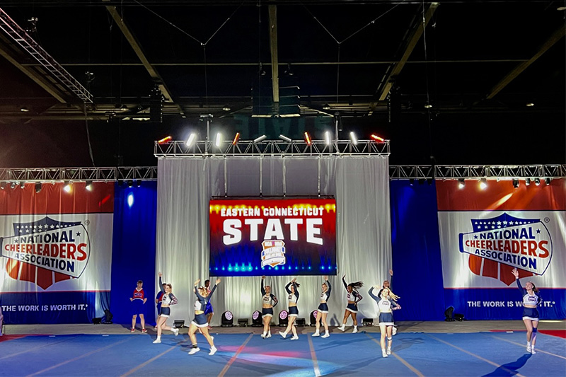 The team has had a busy year, cheering at Eastern basketball games, performing at a Bridgeport Islanders game and capping off the season with this trip to the NCA College Nationals.