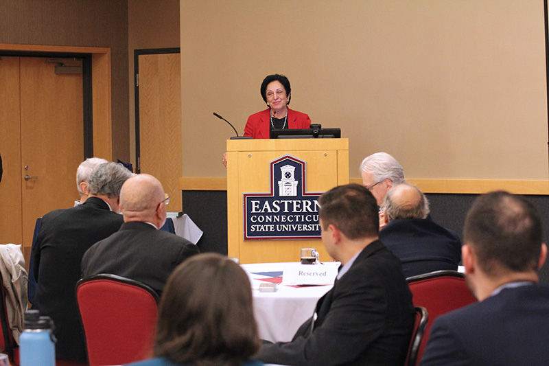 President Elsa Núñez gave the opening remarks, followed by Lobe, vice president and deputy general counsel at Mohegan Gaming and Entertainment. “Joseph is an exemplar alumnus,” said Núñez, referring to his career as a lawyer and accountant and continued involvement with his alma mater as a board member of the ECSU Foundation and adjunct faculty member in the Department of Management and Marketing.