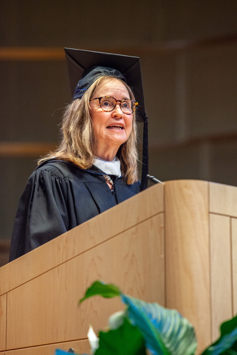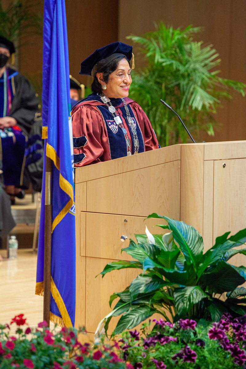 Following Merrill's commencement address, Eastern President Elsa Núñez also offered words of encouragement to the graduates. "You are self-disciplined, highly motivated, and make us all very proud. I want you to be proud of yourself, firm in your convictions, and confident in your abilities.