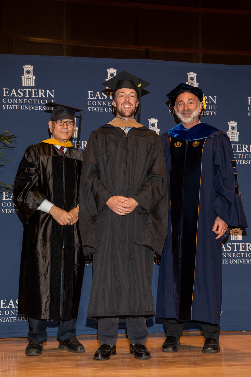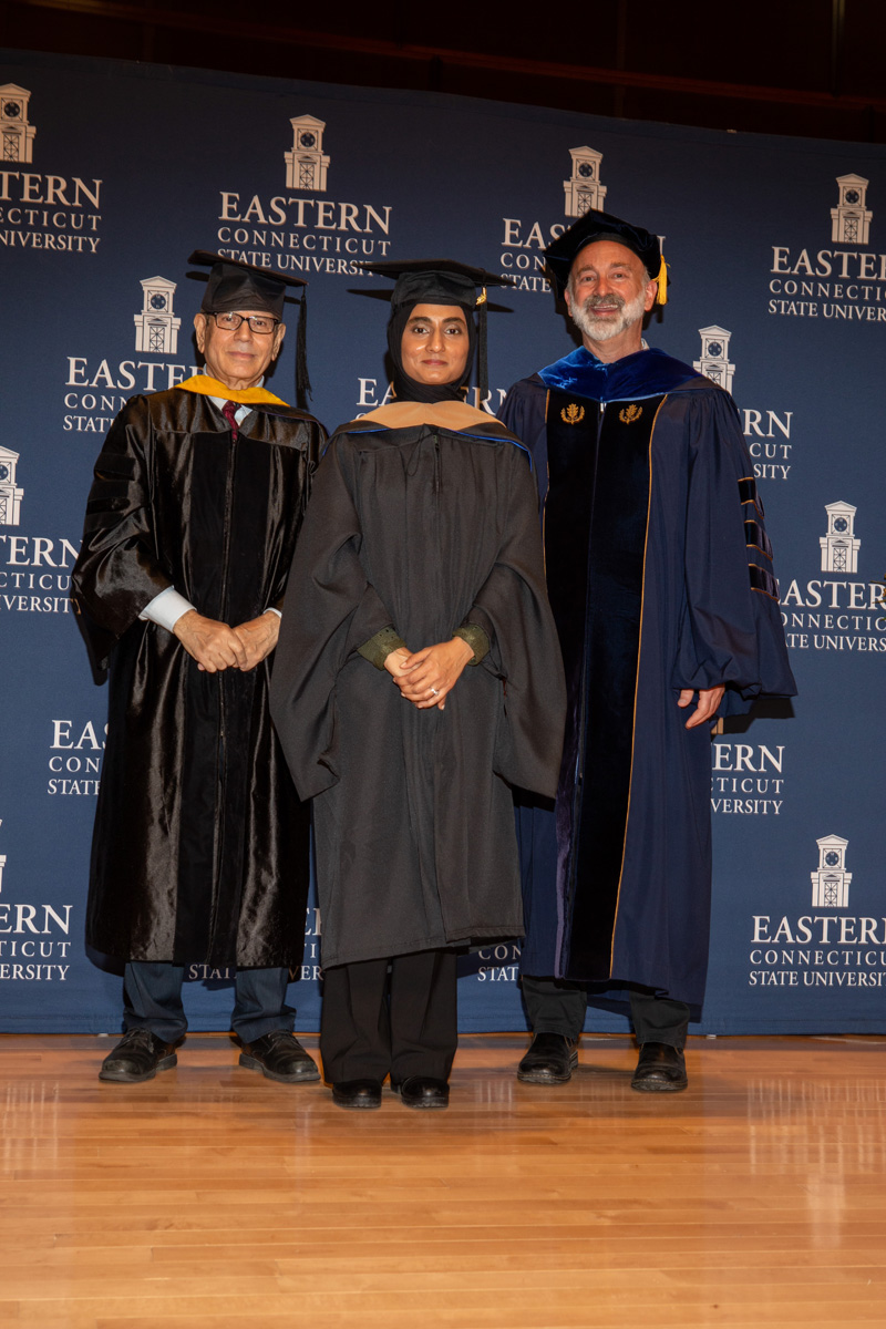 With more than 250 guests joining the graduating class and their faculty, the Concert Hall in the Fine Arts Instructional Center at Eastern Connecticut State University was at full capacity on May 14 for Eastern's Graduate Commencement and Hooding Ceremony for master's degree graduates. Eighty-four students received degrees in eight Master of Science programs, including 11 students in Accounting, six in Organizational Management, and 67 in six different Education programs.