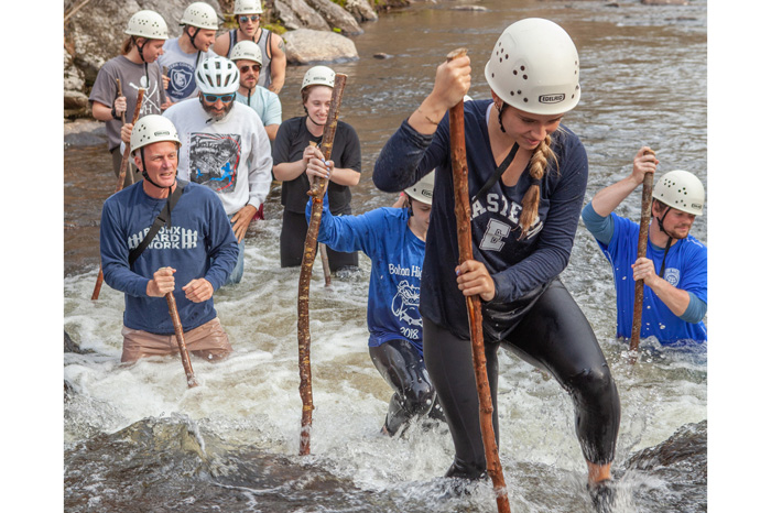 “The depth is usually between six inches and six feet, depending on the path you choose to take,” he continued. “Walking against the swift current provides for a very challenging experience. The 40ish-degree water is usually forgotten about quickly because the body is working hard enough to sweat! The teamwork and bonding of the participants is amazing to witness. Having these pre-service teachers experience something that is new… helps them to realize (the varying abilities of P-12 students) and gain a new, much-needed perspective on the developmental appropriateness for each individual student.”