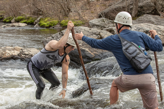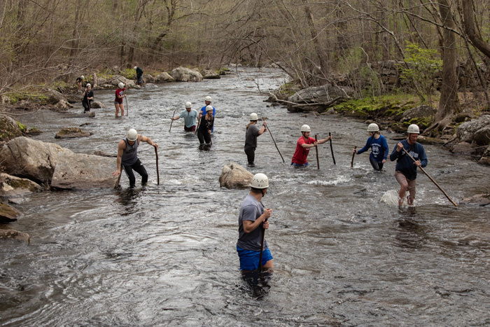 Physical education students trek through Mount Hope River