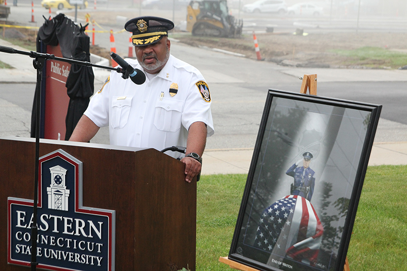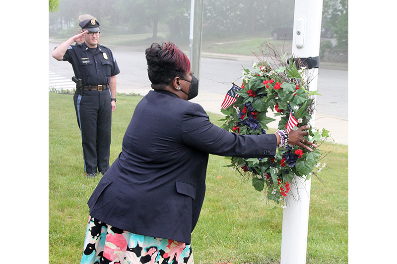 Since 2013, a member of the campus community has been selected to lay the memorial wreath. This year, the honor went to Kemesha Wilmot, interim dean of students. Tavares said Wilmot has worked closely with the department’s staff and has supported campus safety and community policing efforts.