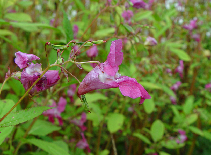 One unexpected recent discovery was a large invasive from Asia known as Himalayan basalm (Impatiens glandulifera), also known as Himalaya touch-me-not or ornamental jewel weed. The six-foot tall purple/pink-flowering annual arrived as a planted ornamental, “which is how a lot invasives get here,” said Connolly.