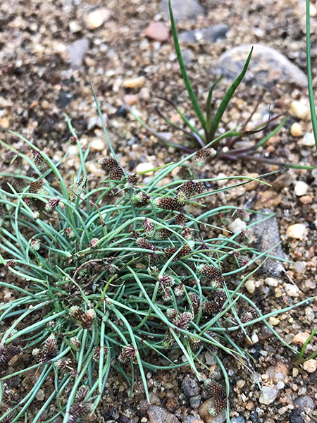 Another addition to the herbarium record that Connolly is excited about is dwarf bulrush (Lipocoarpa micrantha), a rare native never before found in Windham County. The easily overlooked, grass-like plant was spotted in a sandy alcove in a municipal park. Considered endangered for the region, dwarf bulrush grows in an uncommon type of sandy habitat.