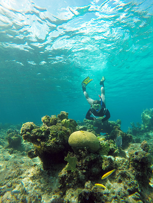 Biochemistry major Sydney DeNoncour accompanied Biology Professor Joshua Idjadi on a research trip in The Bahamas to study a rapidly spreading disease that is affecting Caribbean coral reefs. Stationed at the Gerace Research Center from June 8–17, the researchers conducted eight underwater surveys around the small island of San Salvador.
