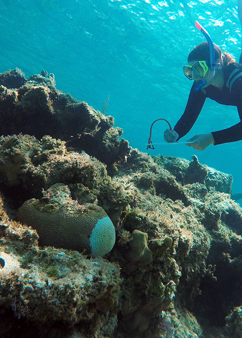 “My job was to assist in locating coral and documenting whether it was healthy or infected,” said DeNoncour, who also recorded the scientific name and the size of the corals while underwater using a dive slate and pencil.