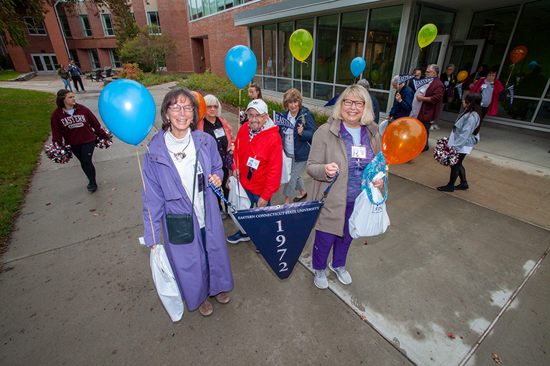 Crowded around the main concourse of the Student Center, students and their families cheered as Eastern’s alumni paraded through the building with festive balloons and placards indicating their graduating classes. The Alumni could not contain their smiles as 1970s hit “Welcome Back” echoed through the building.