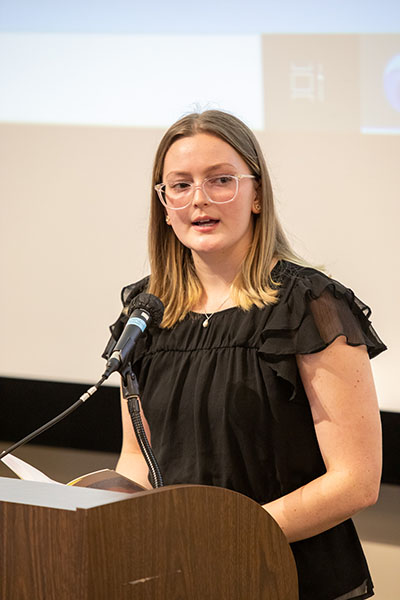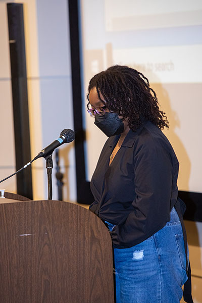Fellow Eastern student Kai-li Davey read her poem, “Avoidance,” directed at a white adoptive parent who recognizes racial injustice being shown on the evening news but refuses to fully acknowledge it, “like this is an issue you can just wish away.” Meanwhile, recent Eastern graduate Colleen Goff read “Sagging Pants Isn’t the Issue,” which comments on the police brutality and systemic racism that led to the murders of Tamir Rice, Breonna Taylor, George Floyd and others.