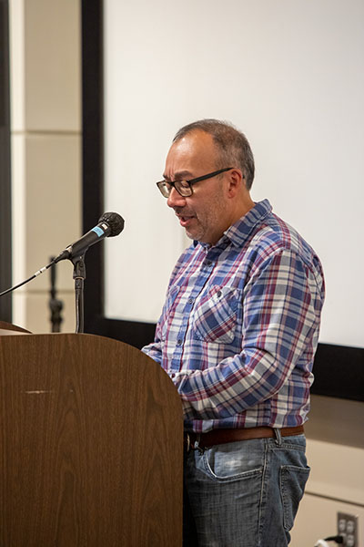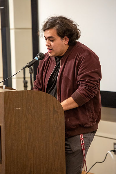 The reading included several of the journal’s featured poets, including nationally published authors and current/recent Eastern students. Eastern student Samuel Perez Lopez read his poem “Protest of Monarchs,” which is written from the perspective of Mexican immigrants in America who protest for want of a fair chance at happiness and success.