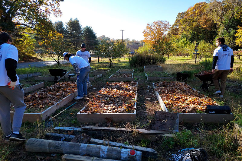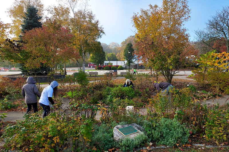 Several locations were sites for community gardening, including Jillson House on Main St. in Willimantic. The garden outside Jillson House was littered with trash, and students came together to pick it up, rake leaves, sweep walkways and restore its beauty. Eastern student Olivia Gardner was the leader for this location. “It’s always been very important to me to be close with my community and to better my community,” she said of her motivation to clean up the community surrounding Eastern.