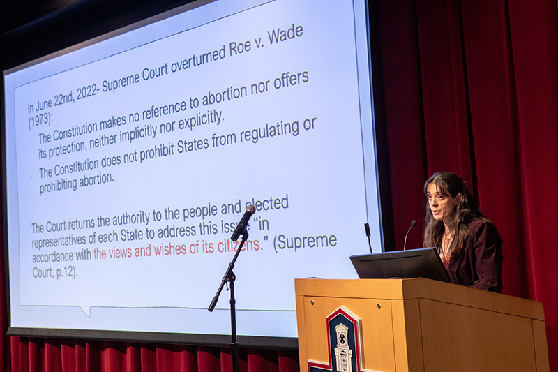 Two philosophy faculty members examined perspectives on the right to abortion in a panel discussion on Nov. 7. Professor Ana Funes-Maderey and Lecturer Matthew Rukgaber each presented a different perspective on why abortion should be legal. The event was presented by the Philosophy Program in partnership with the Human Rights and Philosophy Clubs.