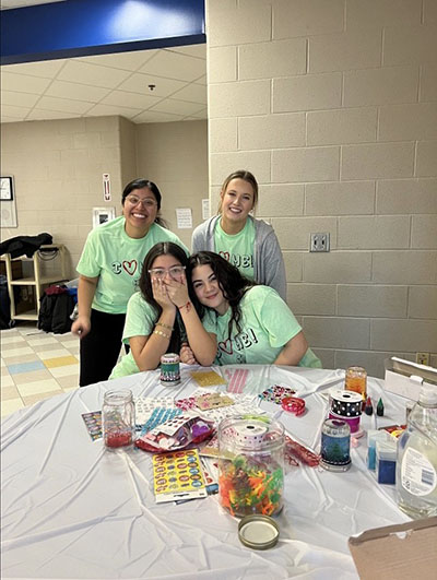 Students painted positive affirmation reminders, spun a "mental health" wheel to describe their personal coping methods, found matching cards displaying suggestions to deter mental illness, made Valentine's Day themed cupcakes, played cornhole and created makeshift snow globes.