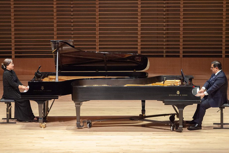 The onstage setup featured multiple pianos facing each other. “There’s a certain aesthetic of having the pianists facing each other versus sitting next to each other,” said Reiss. “It feels more intimate.”