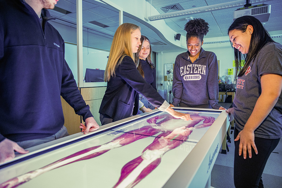 Equipment that will be used by faculty and students on Eastern’s campus includes a virtual dissection table; high fidelity simulators—manikins that mimic human physiology; specialized manikins such as trauma, birthing and pediatrics; and a skills/demonstration lab. The simulation facility being built at Windham Hospital by Hartford HealthCare will provide additional clinical training.