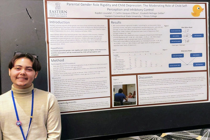 Vasquez-O’Brien and Rellinger Zettler then joined Eastern junior Kayden Louzada to present “Parental Gender Roles and Child Depression: Moderation by Self-Perception and Inhibitory Control.”