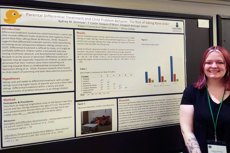 Vasquez-O’Brien rounded out her conference with a presentation alongside junior Sydney Smirnow, a research assistant in her lab, and Rellinger Zettler. The presentation was titled “Parental Differential Treatment and Child Problem Behavior: The Role of Sibling Rank.”