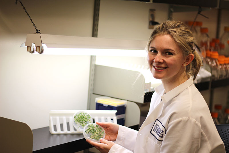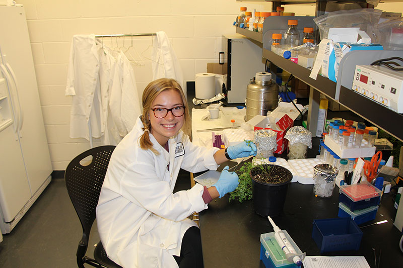 The students who conducted research using the system are Megan Piechowicz ’23, an honors student who plans to pursue a graduate degree in human genetics and genetic counseling; Kate Arildsen ’22, who is planning graduate research in plant science; and Catrina Sullivan ’22, who is a postbaccalaureate fellow at the National Institute of Neurological Disorders and Stroke, part of the National Institutes of Health. Sullivan’s long-term goal is to pursue a career in medicine.