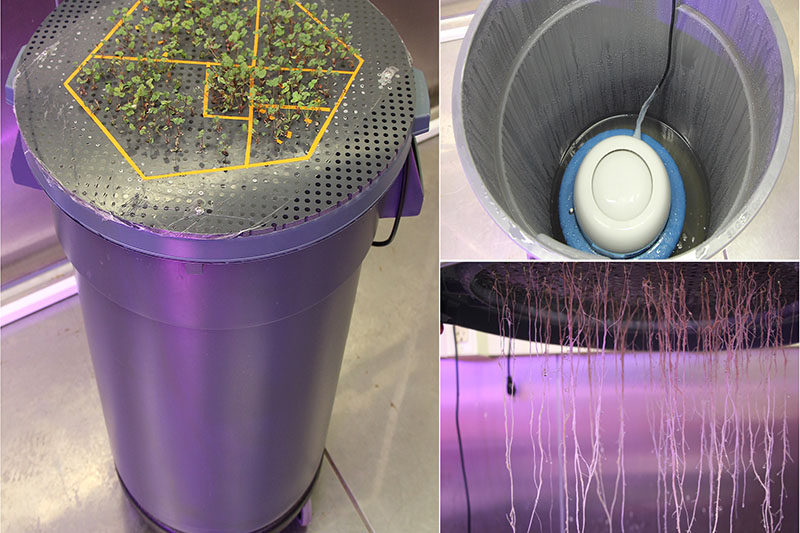 It has some readily available components — a garbage can is the aeroponic chamber — and some that are more exotic, such as an industrial humidifier made by a Swiss company that is placed in the chamber’s base. A garbage can lid, which supports the plants, had to be modified with 800 precisely drilled holes. Bouthillier found a solution for that with a pre-perforated PVC lid, Veerappan said. The system is reusable, adaptable to studying other plant parts and affordable to build.