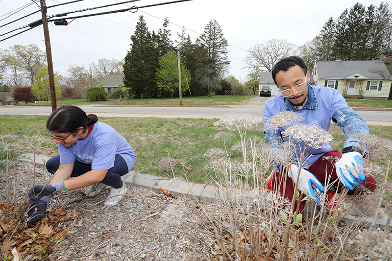 Eastern Connecticut State University students volunteered nearly 320 hours of service at 10 Willimantic sites during the Town Pride, Town Wide community clean-up on April 22.