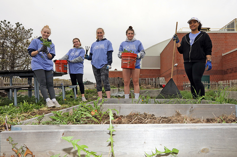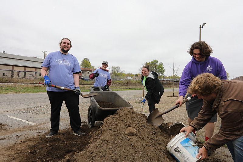 The 71 students organized by Eastern’s Center for Community Engagement raked, planted, weeded and painted at Lauter Park, CLICK, the Railroad Museum, Willimantic Whitewater Park, the Schilberg Butterfly Garden, the Windham Textile and History Museum, Pequot Trails, Windham Middle School, High Street and the Greenway Garden Project.