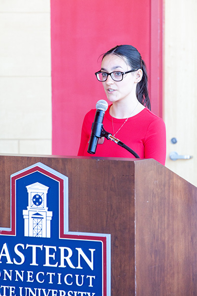 Cailey Soper, a sophomore English major, won the CCE’s Student Community Engagement award for volunteering for many CCE programs in her first two years at Eastern. This semester she is working at the No Freeze center for the homeless. Before she came to Eastern, she volunteered at a Best Buddies program in her hometown, Guilford. At Eastern, she began volunteering as part of a class last spring, and she enjoyed it so much that she decided to continue. She plans to become a high school English teacher.