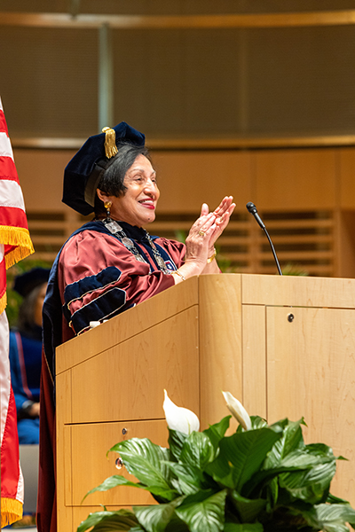 He encouraged the graduates to embark on their own quest. “You have a proven desire to have a life by design versus a life by default,” he said, lauding their commitment to pursue higher learning. “Learn from every experience, and through it all, bring a great sense of curiosity,” he said.