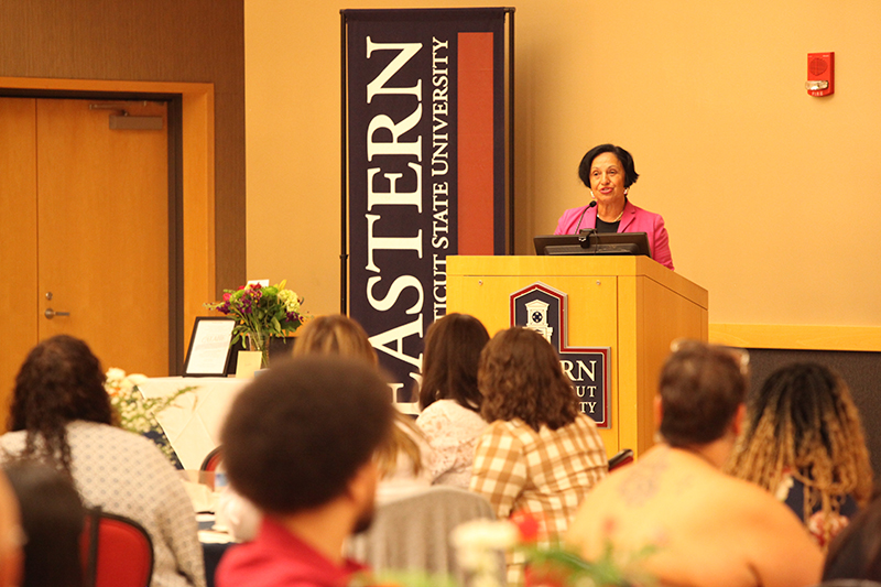 President Elsa Núñez told the recipients and their parents that a reception hosted by CALAHE when she first came to Eastern was “one of the most gorgeous occasions of my life,” and it made her feel like, “I belong in Connecticut.” The group’s signature program is offering 20 to 25 scholarships a year, she noted. She urged the recipients to use their scholarships to work hard and give back generously to others.