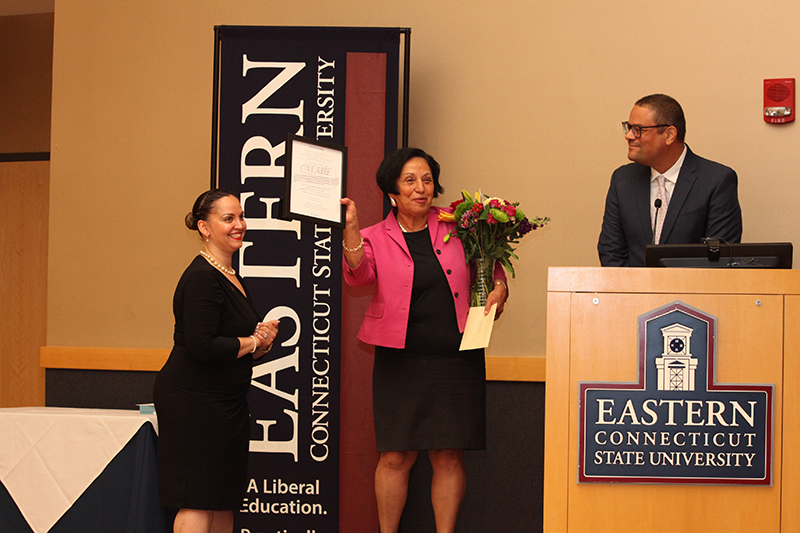Sierra Colon-Rivera ’17, a former scholarship recipient at Eastern and now the academic services coordinator at the University of Connecticut at Hartford, said the award helped her fill in gaps in her college expenses and take part in activities such as study abroad.