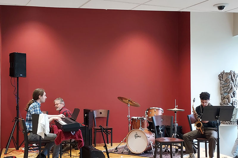 Eastern Connecticut State University’s Campus Activity Board (CAB) and the Jazz Combo recently collaborated for a morning of entertainment in recognition of National Coffee Day. CAB hosted the Jazz Combo for a performance in the Student Center Café on Sept. 29.