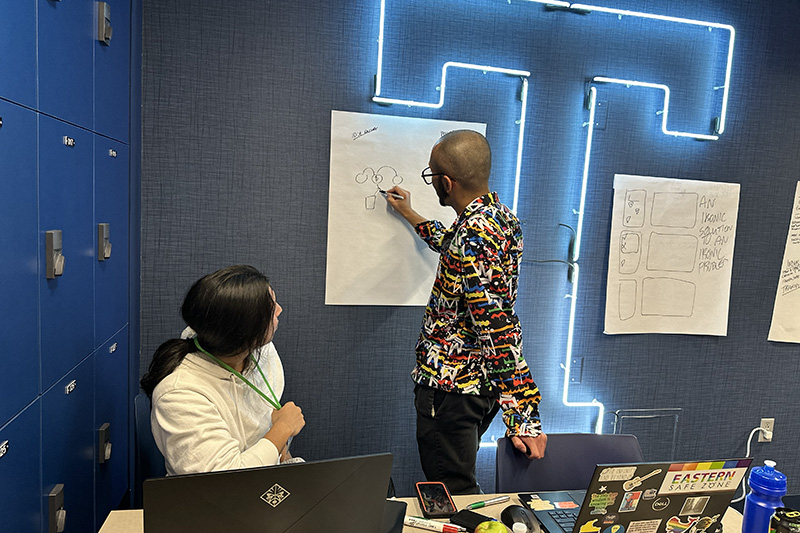 Brainstorming paid off for Eastern Connecticut State University computer science students Ian Valeta and Diego Hernandez Ramirez when their plan for a tree-planting digital game won them the top prize at the Hack4Delta Sustainability Hackathon Sept. 15-17 in Hartford.