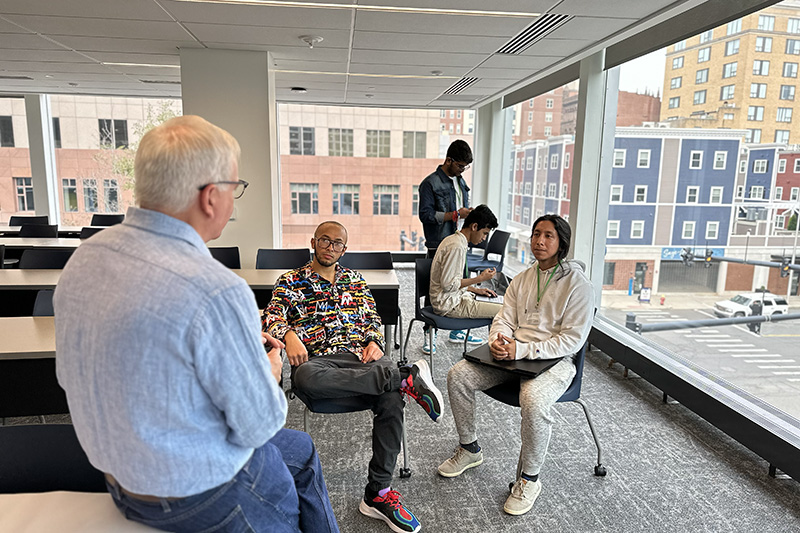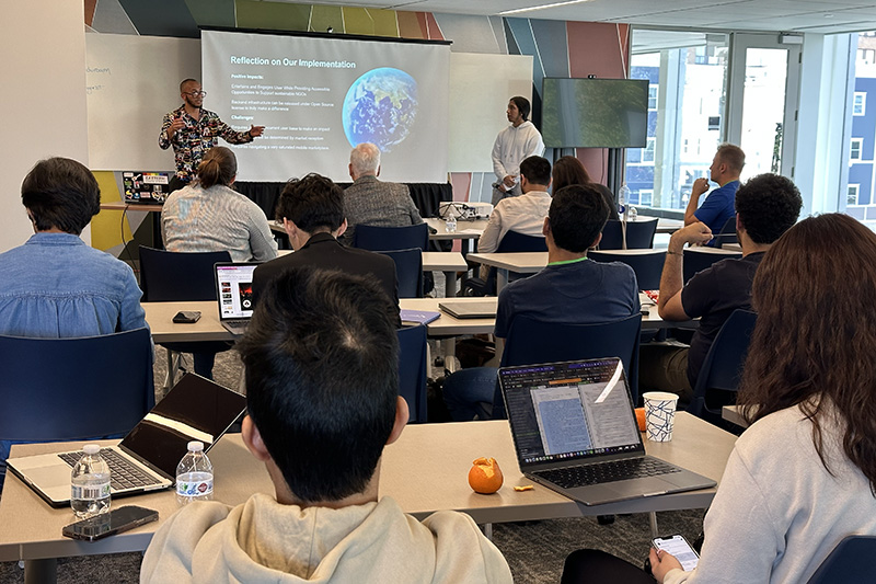 Both students are juniors majoring in computer science. Hernandez Ramirez also works remotely as a software developer at a web3 social media startup. Valeta minors in business analytics and studio art.