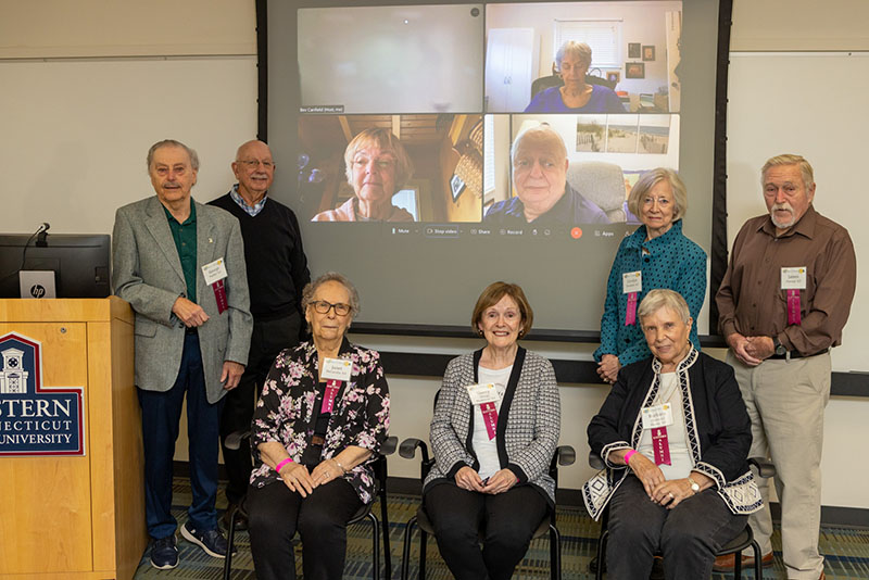 Also present was Mark’s sister, Shanda Hinton ’96. She said that while she initially came to Eastern as a communication major and interned at Fox News and WTNH, she realized she had a passion for human resources and has been working in the field for 23 years. Today, she is the chief diversity officer at RTX.