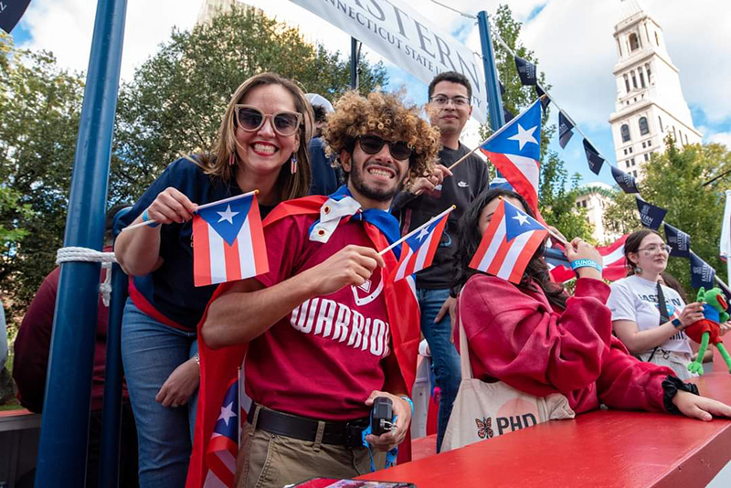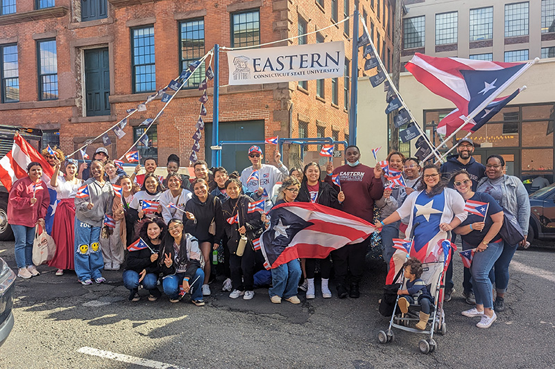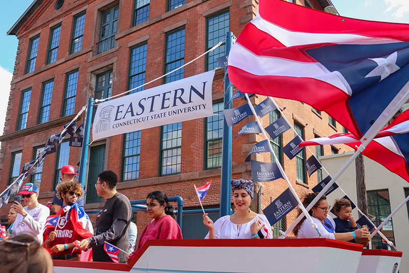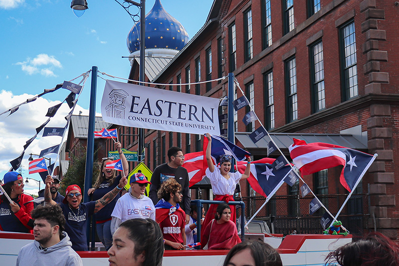 For the first time Eastern Connecticut State University entered a float and sent a delegation of 50 students and staff to the Hartford Puerto Rican Day Parade on Oct. 8. It is Hartford’s biggest annual parade, and more than 20,000 people attended this year.
