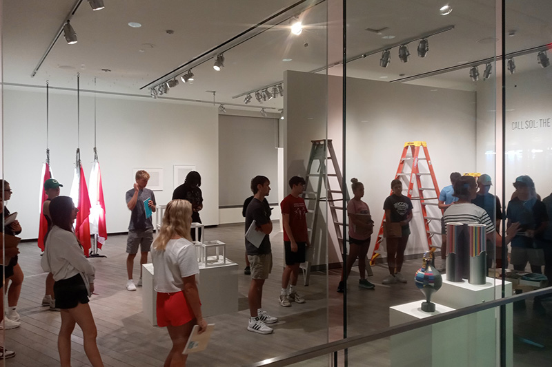The Wesleyan University version that Henry found had compact lines with little or no spacing in between and a compact interpretation. The version at the Blanton Museum of Art at the University of Texas, created by 49 students, overlapped some colors, giving an overall “beautiful earth tone,” she said. The University of Arizona’s Museum of Art drawing resembled a waving flag.
