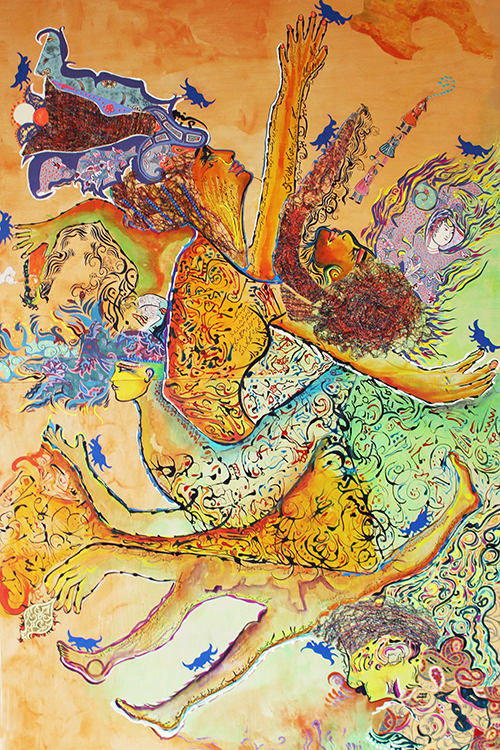 Rahmanifar’s depiction of womanhood is reflective of both her personal experiences and of women’s historical roles and contributions. Her depictions of the female body are also retrospective of these journeys. She deconstructs and rebuilds the figures with the intention to present the woman as a being with a desire to spread her story rather than to be merely a sensual figure.